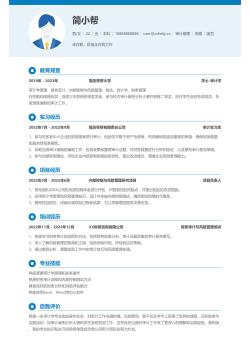 财务管理专业大学生简历模板 ,求职意向:财务管理专员 工作经历:1、协助完成审计工作,包括但不限于财务报表的初步审核、凭证抽查、固定资产盘点等,确保财务数据的准确性。 2、参与编制审计底稿,对客户财务数据进行分析,识别潜在的财务风险,提出改进建议。 3、协助项目经