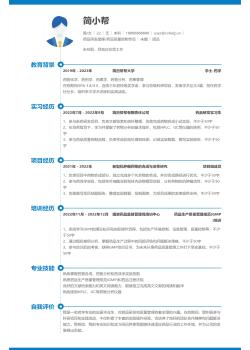 预防医学专业应届生在线PDF简历制作 ,求职意向:公共卫生专员/流行病学研究员 工作经历:1、参与流行病学调查,负责数据收集和初步分析,协助撰写调查报告。 2、协助开展环境卫生监测,包括空气质量、水质检测等,确保数据准确性。 3、参与疫苗接种项目的规划和执行,包括疫苗管理、接种点设置和接种